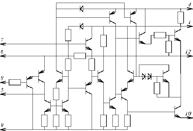 Назначение выводов: 1 - питание +Uи.п.; Принципиальная схема ИМС К174УН7.