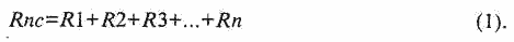 При последовательном соединении резисторов их общее сопротивление (Rnc) увеличивается и определяется по формуле: