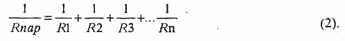 При параллельном соединении резисторов их общее сопротивление (Rnap) уменьшается и всегда меньше сопротивления каждого отдельно взятого резистора и определяется по формуле: