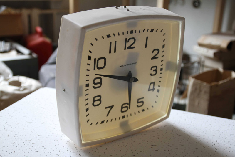 Циферблат белый + стекло. Форма корпуса – квадратная. Размер (мм) 282х282х78. Масса – 1,5кг.