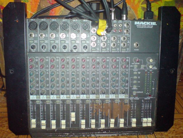 Пульт – MACKIE micro series 1402-VLZ , 14-канальный микшер с расширенным динамическим диапазоном; 6 мик/лин. входа; 4 стерео входа; 3-полосный эквалайзер; 2 AUX посыла и возврата; входы/выходы на магнитофон; фейдеры 60 мм.