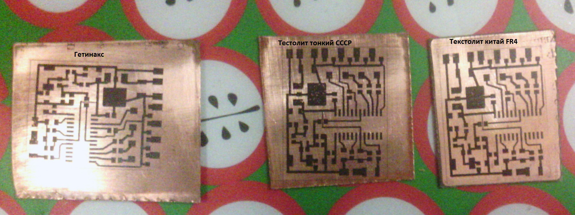 одна из СССР`овско текстолита (про который я писал что отслаиваются дорожки после травления)