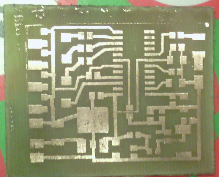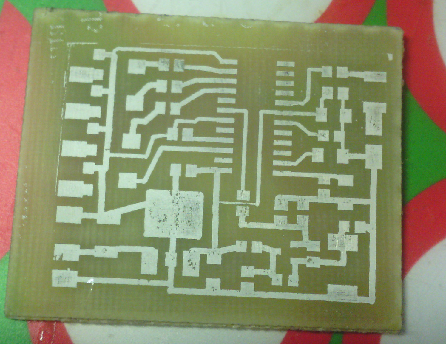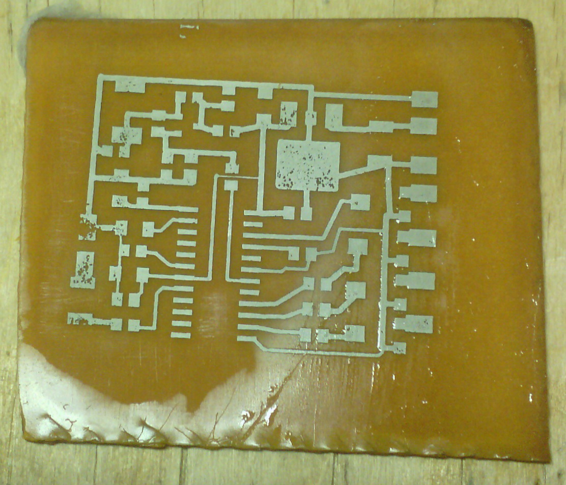 Спустя два часа 30 миунт вытравилась только плата из китайского FR4