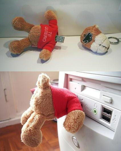 Я представляю эту вещь как подарок, Подходиш к своей пасии показываешь ей этого медведдя после чего отрываеш ему башку и вставляеш ей в комп! Ну так думаю у нее еэто вызовет небольшое замешетельство)))))))