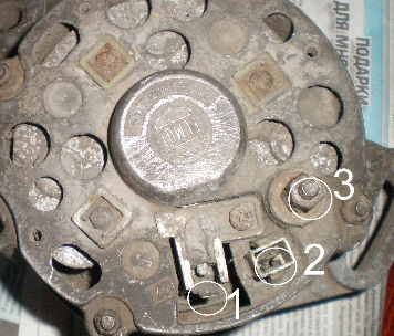 3 клемма +. При проверке генератора, на 3 клемму подсоедини + ометра, а на 1 - омметра. Должно быть примерно 50ом,если поменять полярность подключения омметра, то будет показывать бесконечно. Значит выпрямитель цел. На 2 клемме при измерении омметром сопротивление будет примерно 10 ом не при любой полярности подключения омметра. Если раскрутить шкив и соеденить 2и3 клемы, на них должно быть напряжение.