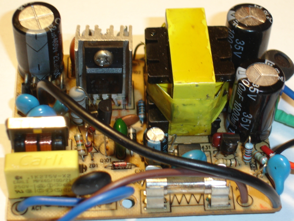 "при проверке пробиты такие элементы конденсаторы 1000*25в-вых.фильтр,С9013-задающий ,стабилитрон В18 ,РС817-оптопара,ТЛ431-образцовый стабилизатор и неизвестный транзистор ,звонящийся накоротко во всех направлениях"----