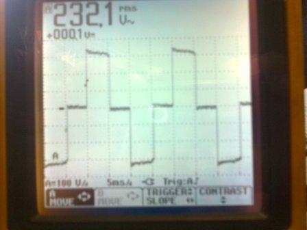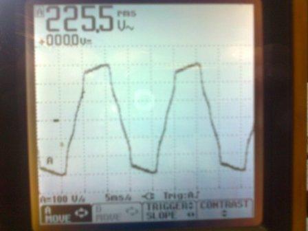 На этой осциллограмме форма напряжения с выхода стабилизатора, подключенного к бесперебойнику.
