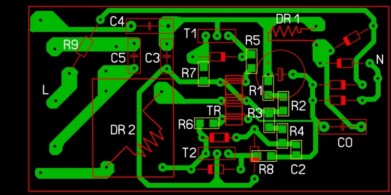 Для начала нужно произвести ремонт лампы. Предполагается, что изготовление нашей лампы будем производить из вышедших из строя ламп. Её схема и печатная плата.
