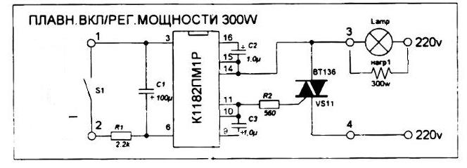 Да, кстати, заметил, в моей схеме с 14 вывода микросхемы идет на управляющий электрод симистора, а резистор и конденсатор там тоже стоят.