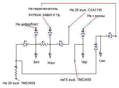 Наконец-то я посмотрел плату и, чесно говоря, ничего не понял. Выкладываю рисунок. Smoker если не затруднит, глянь. Все диоды чего то в одну сторону. Куда там электричество идет, не понимаю, от чего часы работали. Можно конечно посмотреть на схему трансформатора, трансформ. тоже ведь не простой(вкладывал выше).