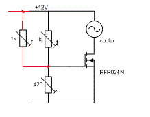 Всем доброго времени суток. Нашёл в интернете множество готовых схем автоматического включения вентилятора. Выбрал схему себе по душе. Требуется чуть чуть её преобразовать. На рисунке красным показаны те соединения которые я добавил сам. А вопрос заключается в следующем: будет ли работать схема при включении второго терморезистора параллельно первому (в схеме используются 2-а радиатора и требуется снимать температуру с двух мест)?