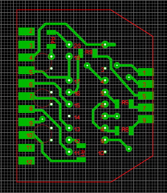 Чего то у тебя не то с нумерацией ножек у микросхемы, если у тебя это две стороны.