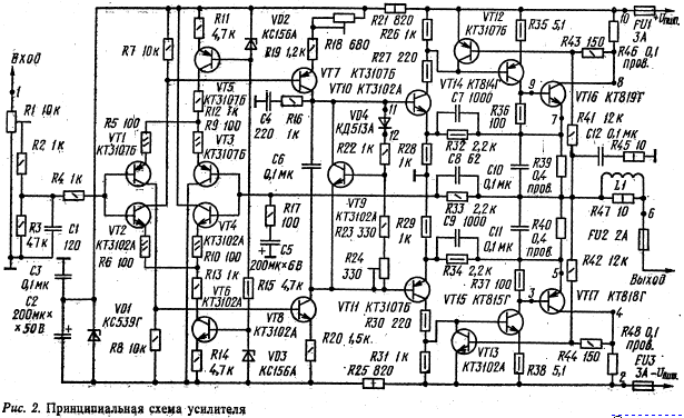 Схема довольно простая. Разобраться в ней не составит труда любому радиомеханику. Все усилители мощности ЗЧ структурно похожи друг на друга. Мой совет найди книгу по теории усилителей в интернет почитай и если разбераешся хотябы в основах электроники то разобраться конкретно в этой схеме не составит труда. А по поводу конденсаторов то они взаимозаменяемы, главное чтобы по напряжению было не меньше, и по типу электролит - не электролит.