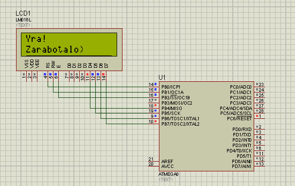 Написал небольшую прошивку под дисплей 44780 и atmega 8 попробуйте собрать эту схему со свом дисплеем фьюзы оставляем неизменными только кварц ставим внутренний на 1Мгц.