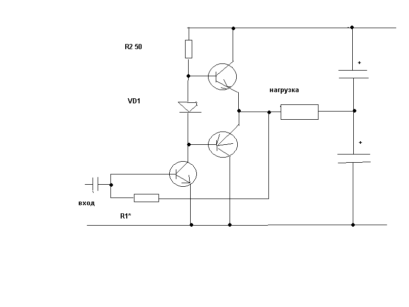 между базами ставь лучше диод или даже два. что на входе будет? тогда конкретней сказать можно.Rrenovatio пишет: Транзисторы на радиатор? или не греются...