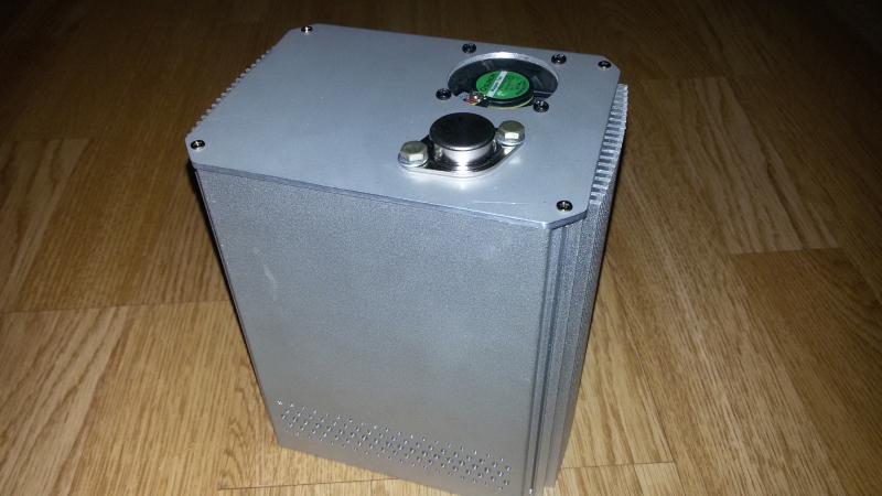 Вентилятор на обдув был выбран маленький из-за размера корпуса, но высоко оборотистый от какого-то серверного девайса. На полных оборотах он довольно-таки шумный, но как после показала практика, этот вентилятор не раскручивался до полных оборотов из-за того, что успевал остужать сам корпус.