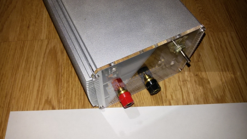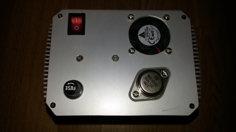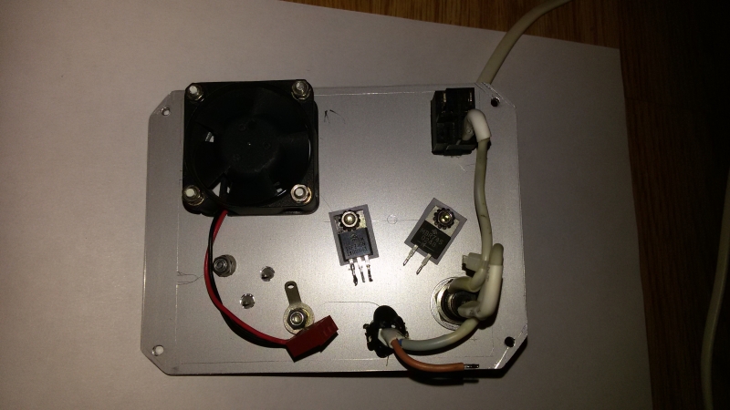 До двух Ампер блок работает тихо и вентилятор крутится совсем неслышно. Транзистор отдаёт тепло на посадочную алюминиевую площадку, а та в свою очередь отдаёт её на сам корпус.