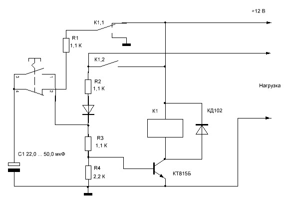 1) при подаче +12 вольт = С1 заряжается до 12 вольт ч/з 0.5 сек.