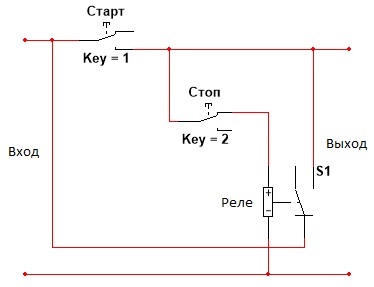 Запросто. Но это делается двумя кнопками без фиксации - Старт (замыкающая) и Стоп (размыкающая). В противном случае - необходимо усложнение.Андрей пишет: Условия такие управление с кнопки без фиксации (нажал реле вкл, отпустил оно работает, еще нажал выключилось) и без использования микроконтроллеров, логик, и т.п.