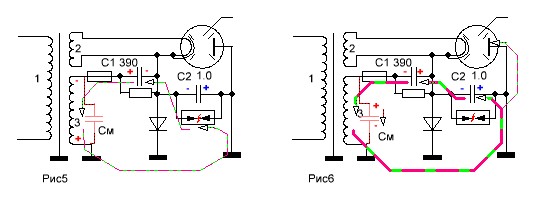 цепи минимальная) Рис 5. Т.к. напряжения и ток приложены в направлениях указанных стрелками, то удвоенное напряжение С1 и L3 Рис5, ещё раз удвоятся на корогкий