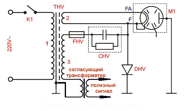Магнетрон - не выделяет собственный сигнал на сопротивлении питающей его цепи.
