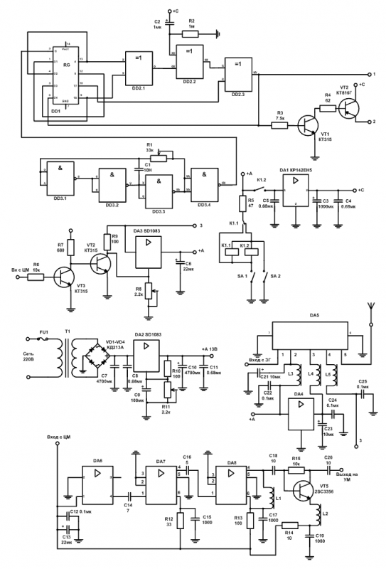 Схема электрическая принципиальная подавителя диктофона.