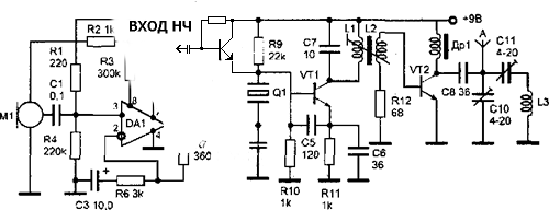 2. Подай сигнал от какого нибудь УНЧ. Появилась модуляция? (Возможно надо подобрать уровень НЧ сигнала) Если да то проверяй ОУ и микрофон;