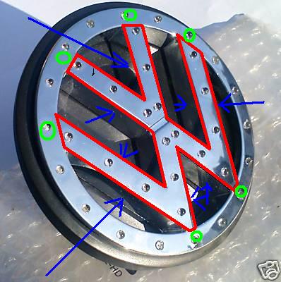 в твоем случаи я бы сделан не сколько иначе выпилил бы в значке дырки по форме буквы W и вклеел бы такойже по форме отполированныую с внешней стороны букву W из огрстекла . боковые грани палок надо сделать матовые(синии стрелки) чтобы свет не расходился, а в углах буквы вклееть сверх яркие светодиоды (зеленые круги), в этих местах стекло надо тоже заполировать) причем если взять разные цвета получиться вообще очень красиво.