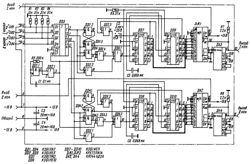 Наметившаяся в последнее время тенденция электронного ступенчатого регулирования громкости с использованием коммутации матрицы дискретных резисторов с помощью счетчиков, дешифраторов и аналоговых коммутаторов открывает широкие возможности для создания многоканальных звуковоспроизводящих устройств с практически идентичными характеристиками регулирования. Однако подобные регуляторы обладают недостаточной плавностью регулирования, их выходные сопротивления существенно изменяются в процессе регулировки, а потребляемая ими мощность часто оказывается довольно значительной. Перечисленные недостатки сдерживают применение регуляторов громкости с электронным управлением в высококачественной звуковоспроизводящей аппаратуре.