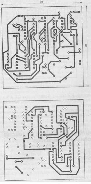 Трехтональный сторож смонтирован на печатной плате из двухстороннего фольгированного стеклотекстолита размером 70x70 мм (рис.2).