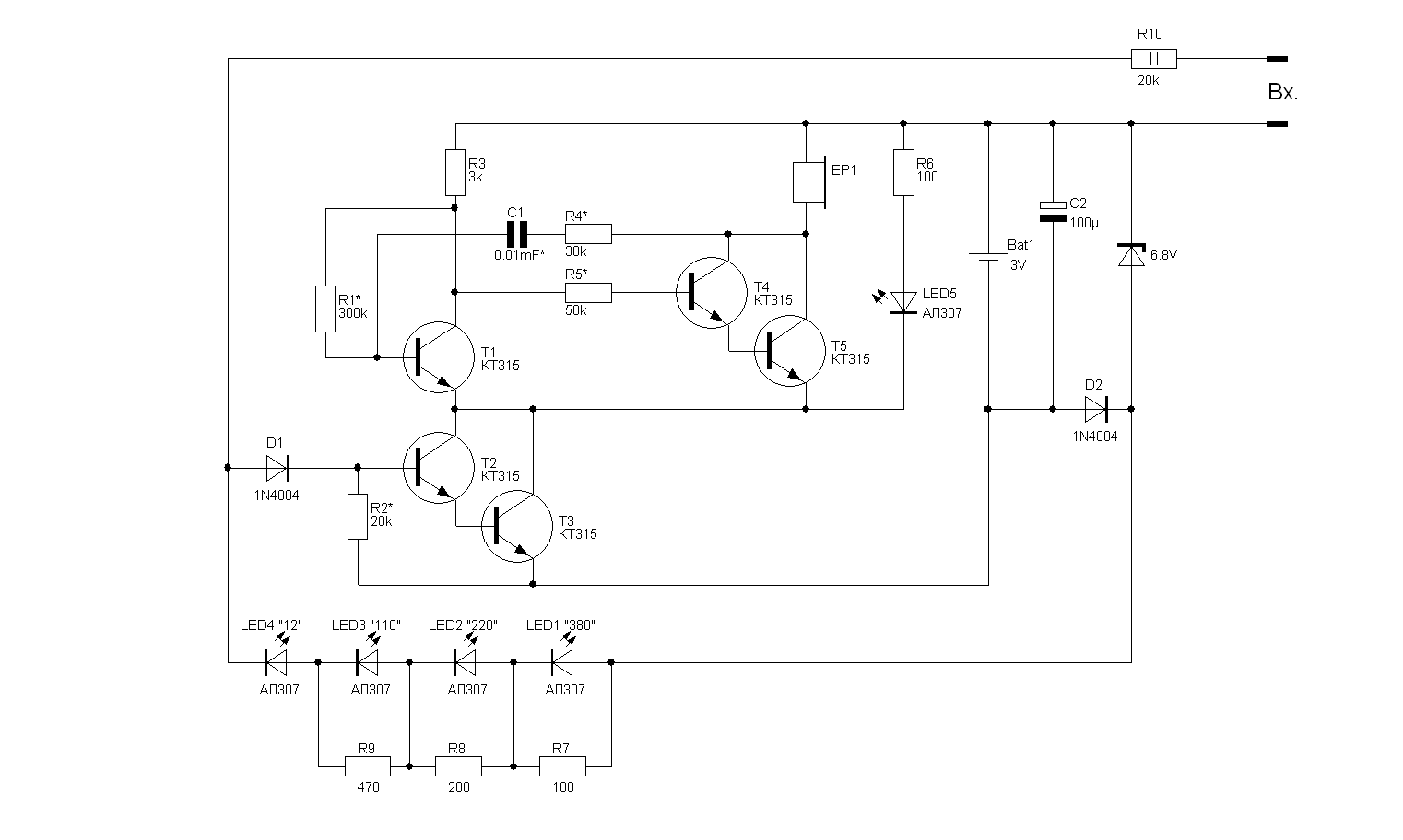 Т1-Т5 - любые маломощные транзисторы n-p-n типа