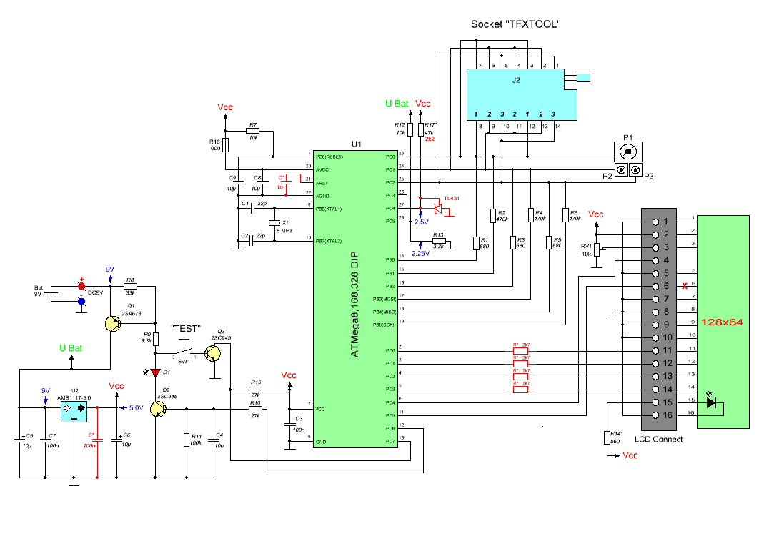 Красным цветом отмечены те элементы и доработки,которые желательно (но не обязательно) установить и сделать,чтобы обеспечить стабильность измерений и соответствие базовой схеме автора.