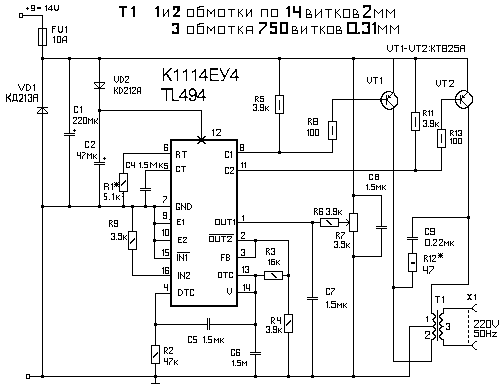 Преобразователь 12V / 220V на таймере 1006ВИ1