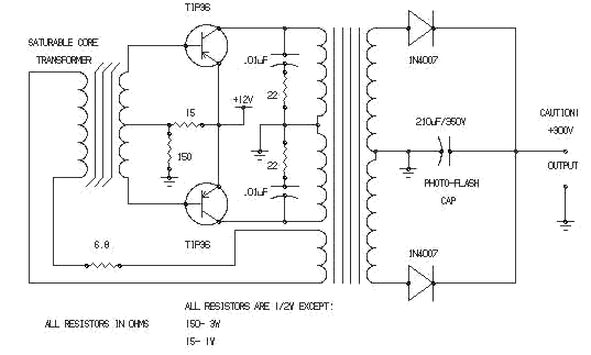 Этот преобразователь, как утверждает автор, работает на нагрузку мощностью до 700 Вт. Резисторы 15 и 30 Ом - проволочные, большой мощности. Трансформатор выбирается исходя из требуемой выходной мощности. Вторичная обмотка - на 24 В с отводом от середины. Источник: http://steve.sky.net.ua