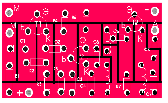 Катушки контуров хорошо делать из посеребренного провода, КПД лучше. Концы транзисторов делать как можно короче.