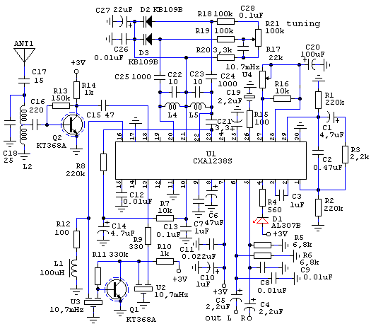 Стереофонический FM (88...108Mhz) приемник на CXA1238S